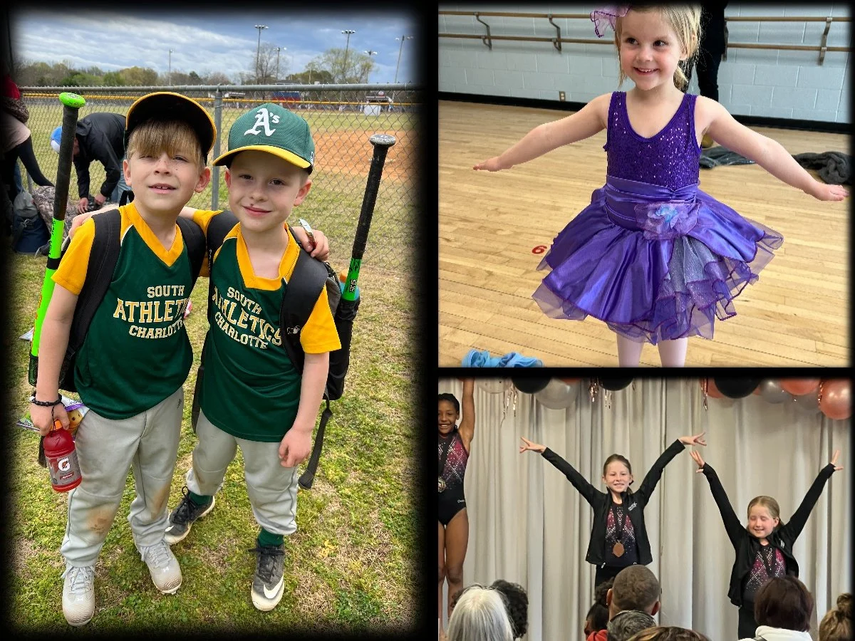 We are in full on spring activity mode now. Yes, that is code for busy…but in the best of ways. I am happy to report that we’ve made some progress and learned from last year. On spring Saturdays last year, we literally needed to be in four places at once. But, with a little bending of some age limit rules, I got both boys on the same baseball team this year. And we also made sure the girls don’t have dance or gymnastics practice on Saturdays. It’s actually logistically possible for us to get them to everything without help! Here’s everybody suited up for gamedays: